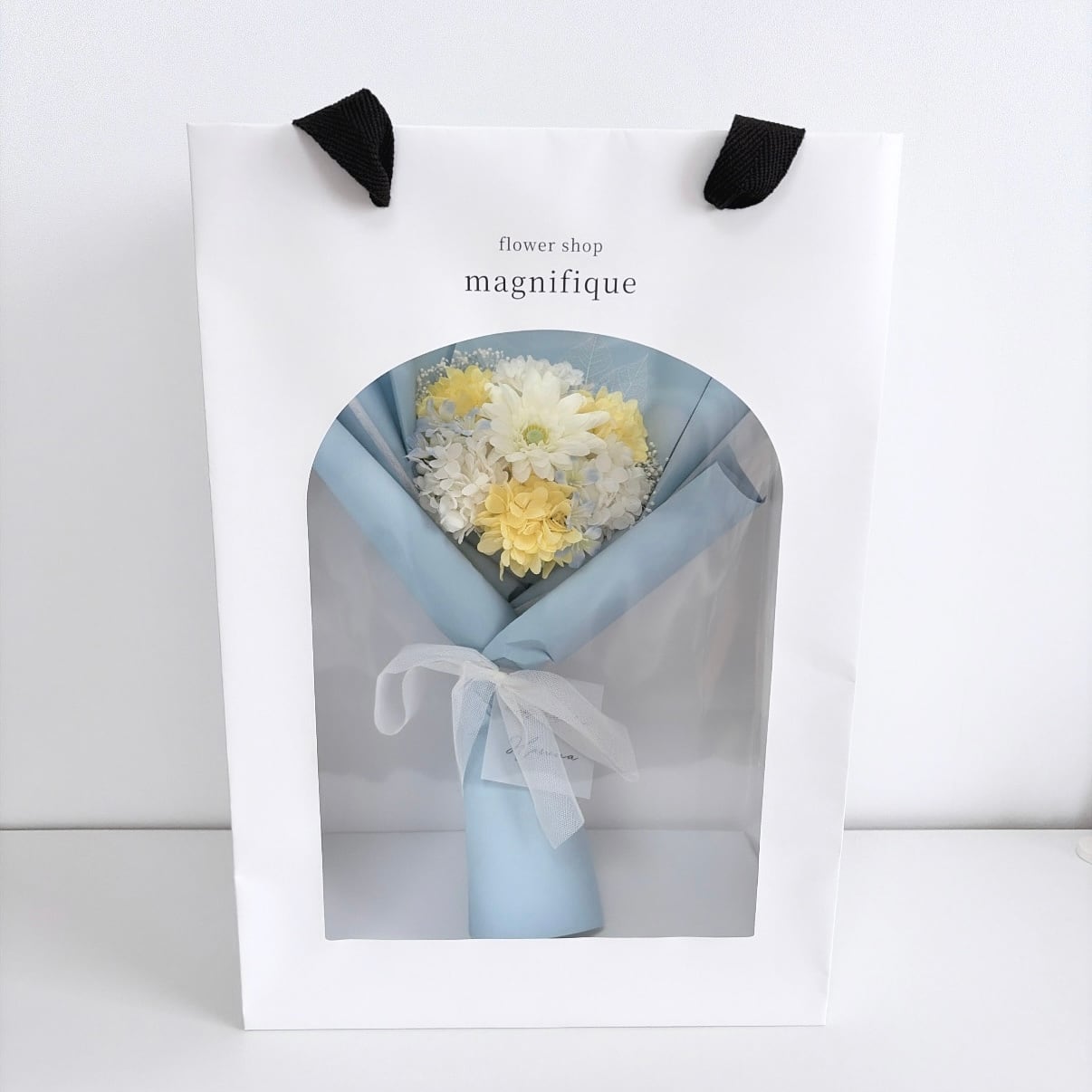 持ち歩きに便利な花束が見えるショップバッグもご準備しています。