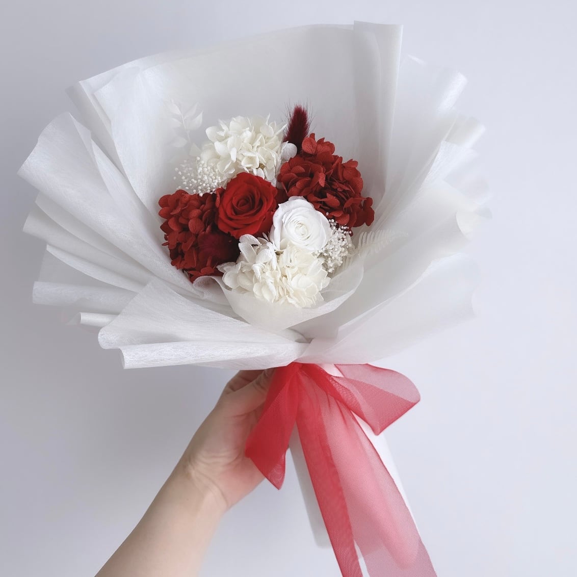 リボンは5枚目の赤のチュールリボンで束ねさせていただきます