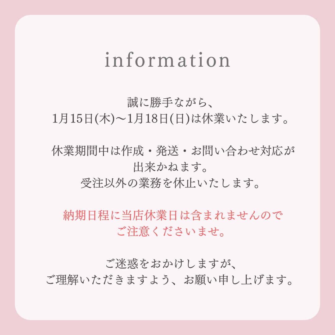 既製品ではございませんので、ご理解のほどお願いいたします。