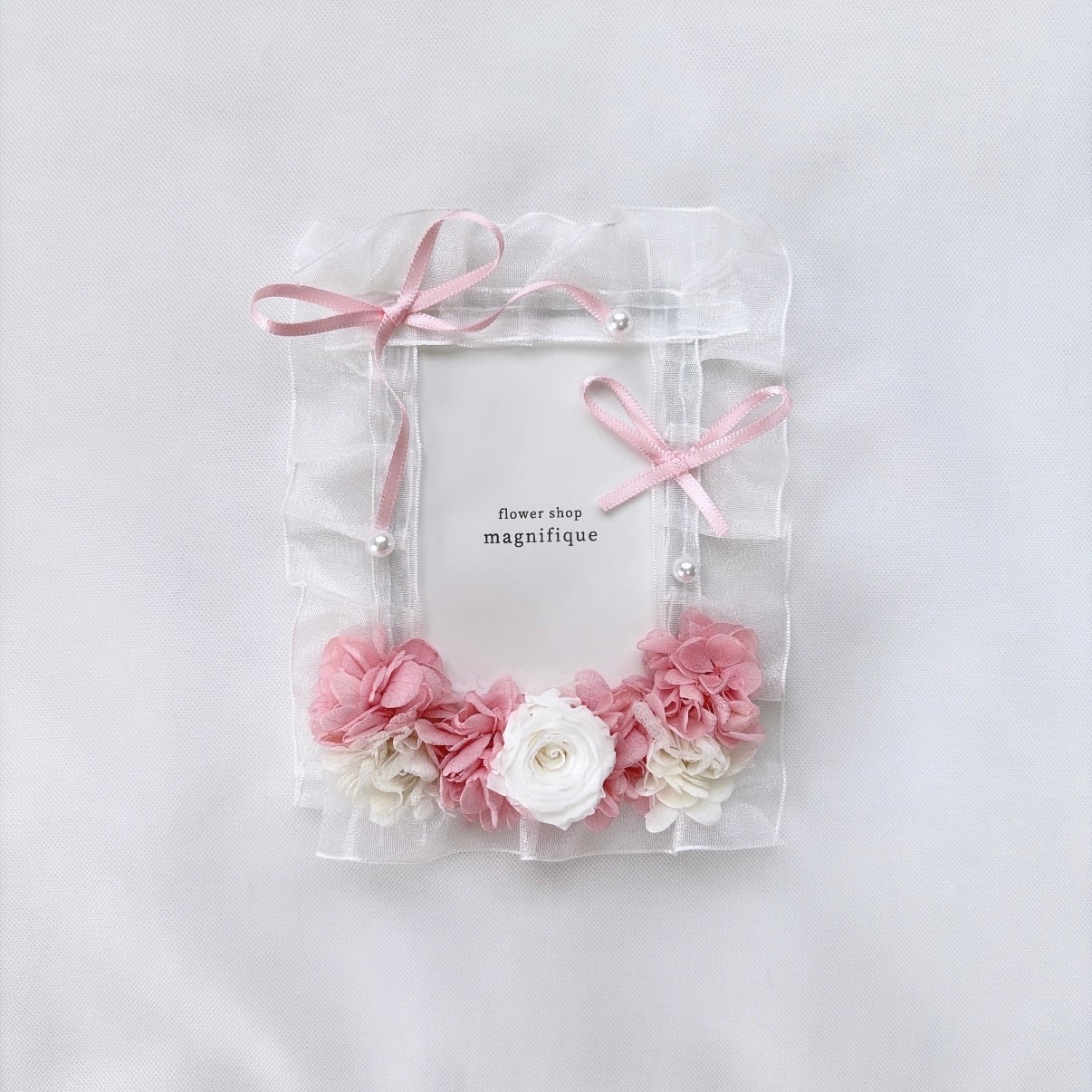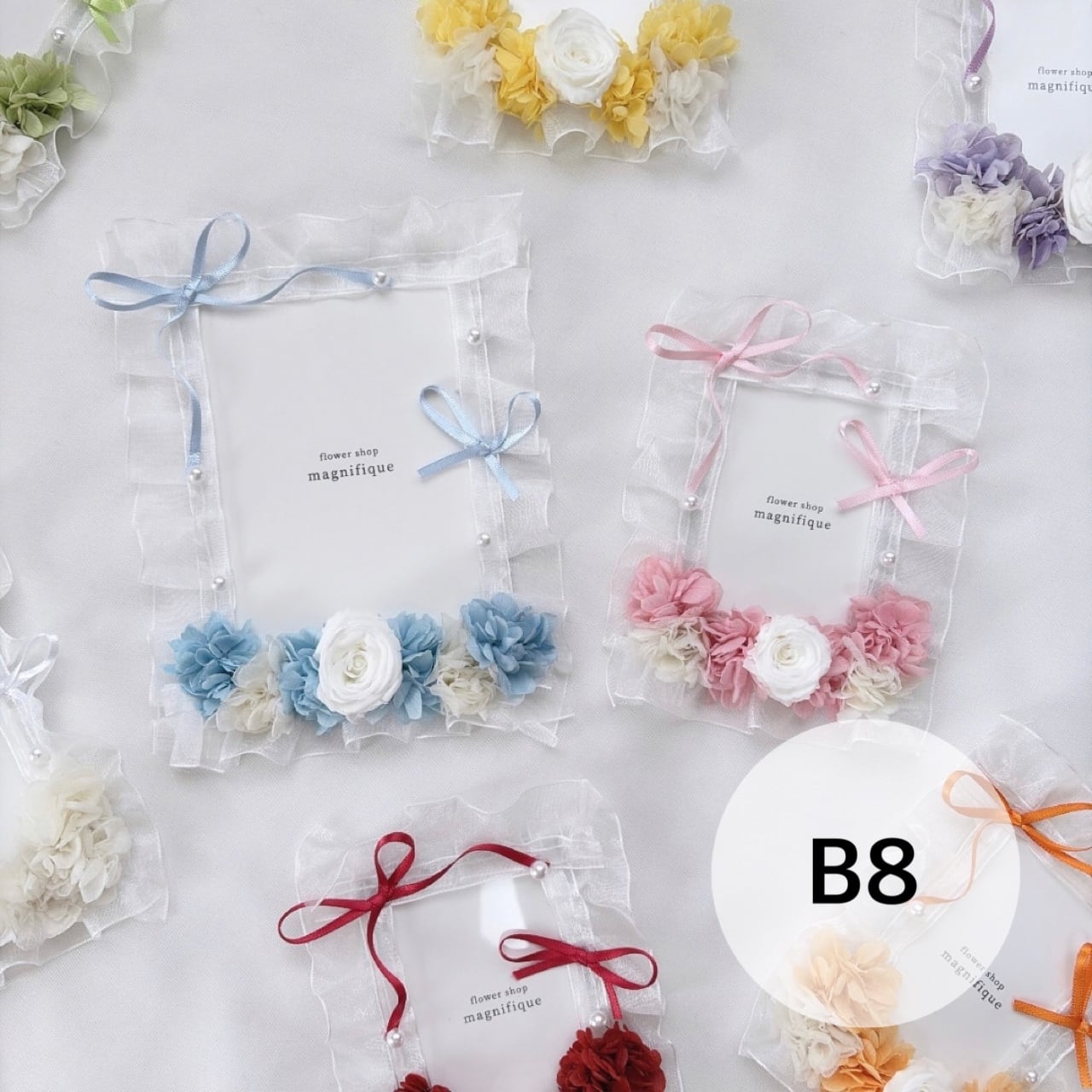 お花の位置、リボンのアレンジなど、若干変わります。