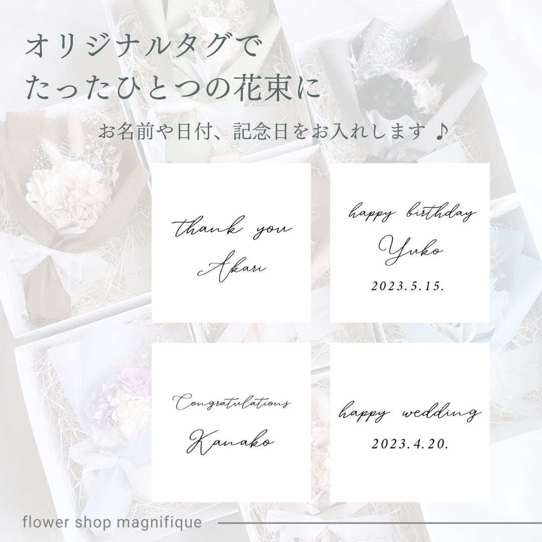 シーンに合わせて、オリジナルのタグをご準備しています。