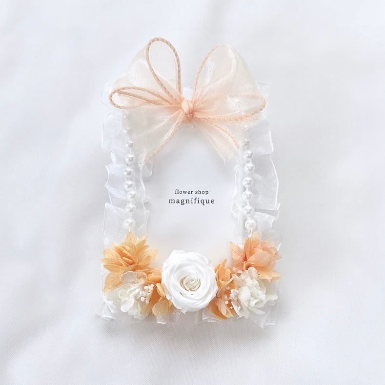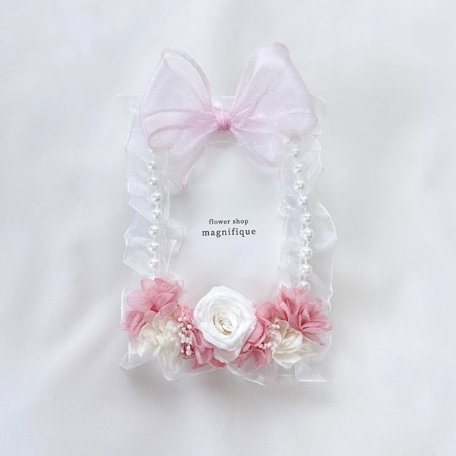 お花で飾ったフォトケースです。