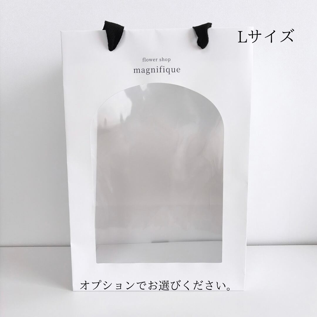 持ち歩きに便利な花束が見えるショップバッグもご準備しています。